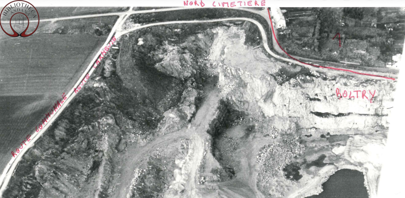 Ci-dessus / Vue Aérienne qui date de 1984, le haut du Boltry a disparu, le nord du cimetière est encore "intact".